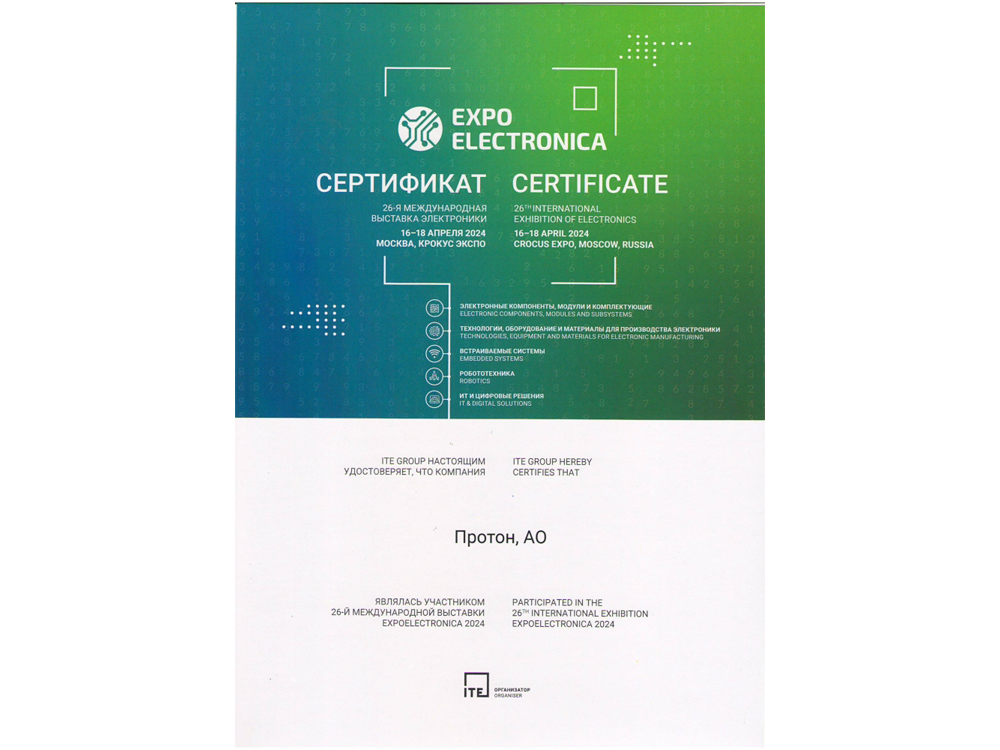 16-18 апреля 2024 г. АО «Протон» приняло участие в Международной выставке электроники — ExpoElectronica-2024.